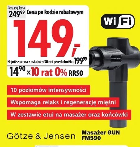 Masażer GUN FM590 10 poziomów intensywności Wspomaga relaks i regenerację mięśni W zestawie etui na masażer oraz końcówki