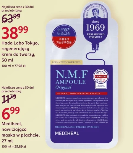 Mediheal, nawilżająca maska w płachcie, 27 ml 100 ml = 25,89 zł