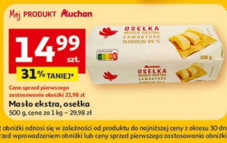 Masło ekstra, osełka 500 g, cena za 1 kg - 29,98 zł