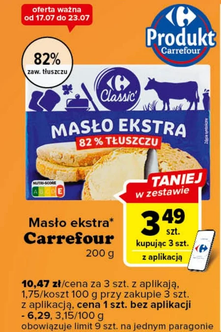 Masło ekstra, 200 g. Promocja z aplikacją przy zakupie 3 sztuk.