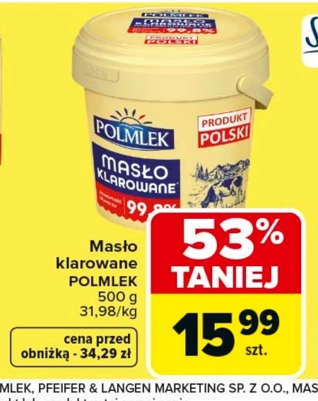 Masło klarowane POLMLEK 500 g 31,98/kg cena przed obniżką - 34,29 zł