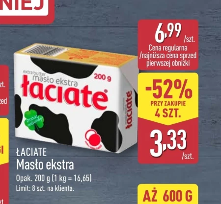 ŁACIATE Masło ekstra Opak. 200 g (1 kg = 16,65) Limit: 8 szt. na klienta.