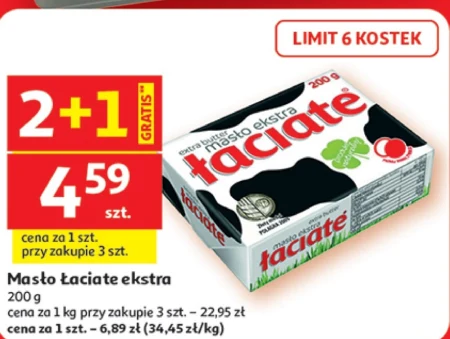 Masło Łaciate ekstra 200 g cena za 1 kg przy zakupie 3 szt. - 22,95 zł cena za 1 szt. - 6,89 zł (34,45 zł/kg)