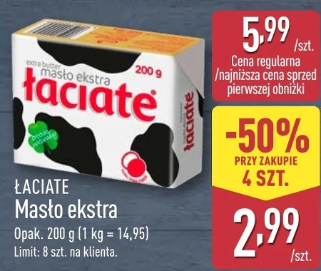 ŁACIATE Masło ekstra Opak. 200 g (1 kg = 14,95) Limit: 8 szt. na klienta.