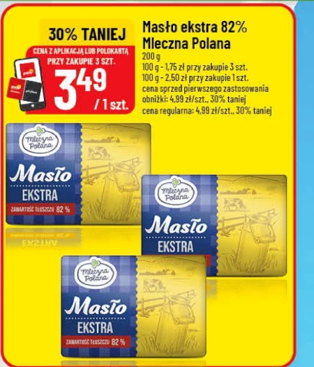 Masło ekstra 82% Mleczna Polana dostępne jest w ofercie POLOmarket w cenie 3,49 zł za sztukę, a przy zakupie trzech opakowań 100 g kosztuje jedynie 1,75 zł. To klasyczne masło o wysokiej zawartości tłuszczu, idealne do smarowania pieczywa, przygotowywania wypieków oraz jako dodatek do potraw. Promocja pozwala zaoszczędzić 30% ceny regularnej, obniżonej z 4,99 zł, więc warto skorzystać z tej okazji i zaopatrzyć się w ten podstawowy produkt spożywczy. Oferta ważna od 2026-04-08 do 2026-04-14 Źródło: gazetka POLOmarket