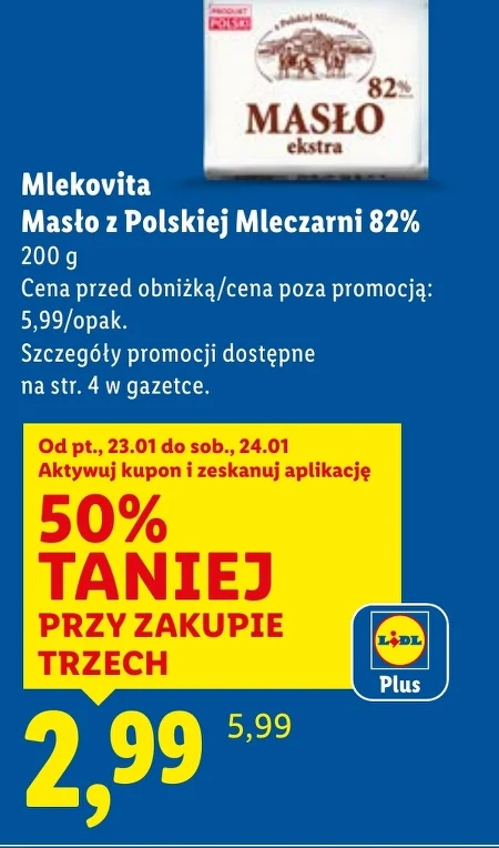 ekstra Mlekovita Masło z Polskiej Mleczarni 82% 200 g Cena przed obniżką/cena poza promocją: 5,99/opak.