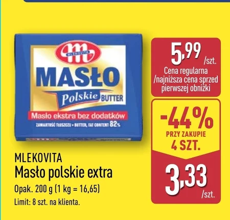 MLEKOVITA Masło polskie extra Opak. 200 g (1 kg = 16,65) Limit: 8 szt. na klienta.