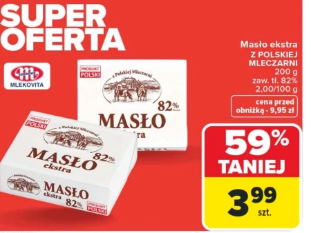 Masło ekstra Z POLSKIEJ MLECZARNI 200 g zaw. tł. 82% 2,00/100 g cena przed obniżką - 9,95 zł