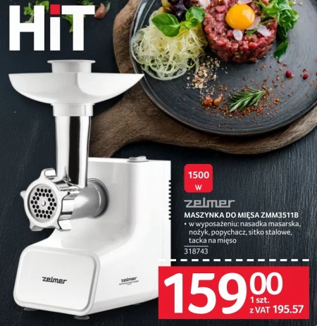 zelmer MASZYNKA DO MIĘSA ZMM3511B · wwyposażeniu: nasadka masarska, nożyk, popychacz, sitko stalowe, tacka na mięso 318743