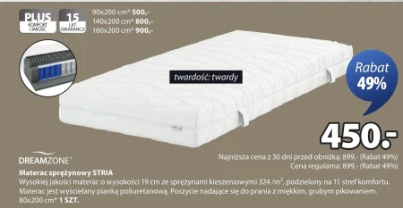 Materac sprężynowy STRIA Wysokiej jakości materac o wysokości 19 cm ze sprężynami kieszeniowymi 324 /m2, podzielony na 11 stref komfortu. Materac jest wyściełany pianką poliuretanową. Poszycie nadające się do prania z miękkim, grubym pikowaniem. 80x200 cm* 1 SZT.