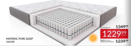 Materac Pure Sleep o wymiarach 160x200 cm dostępny jest w ofercie Merkury Market w cenie 1229,99 zł, co stanowi obniżkę z 1349,99 zł. Najniższa cena tego produktu w ciągu ostatnich 30 dni wynosiła 1239,99 zł. Ten komfortowy materac zapewnia wsparcie podczas snu i jest idealny do sypialni. To doskonała okazja, by poprawić jakość wypoczynku bez nadmiernych kosztów.