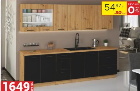 KUCHNIA MODENA szer. 260 cm, kolor czarny/dąb artisan, bez blatu