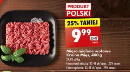 Mięso mielone wołowe Kraina Mięs, 400 g 24,98 zł/kg Cena przed obniżką: 13,48 zł/opak, 25% mniej Cena regularna: 13,48 zł/opak., 25% taniej
