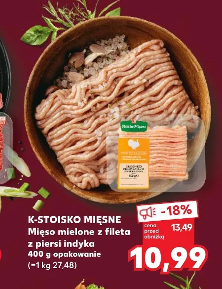 K-STOISKO MIĘSNE Mięso mielone z fileta z piersi indyka 400 g opakowanie (=1 kg 27,48)