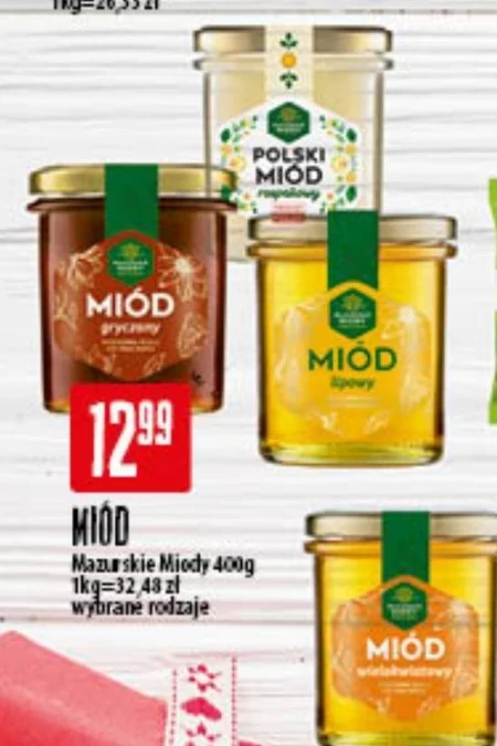 MIOD Mazurskie Miody 400g 1kg=32,48 zł wybrane rodzaje