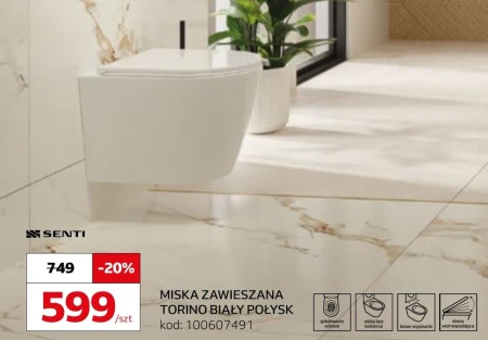 MISKA ZAWIESZANA TORINO BIAŁY POŁYSK kod: 100607491 Miska WC zawieszana TORINO biały połysk to nowoczesna toaleta podwieszana, która doskonale sprawdzi się w eleganckiej łazience, optycznie powiększając przestrzeń i ułatwiając utrzymanie czystości. Dzięki montażowi na stelażu podtynkowym i gładkiej powierzchni w połysku jest idealnym wyborem do aranżacji łazienki w stylu nowoczesnym, minimalistycznym lub glamour.