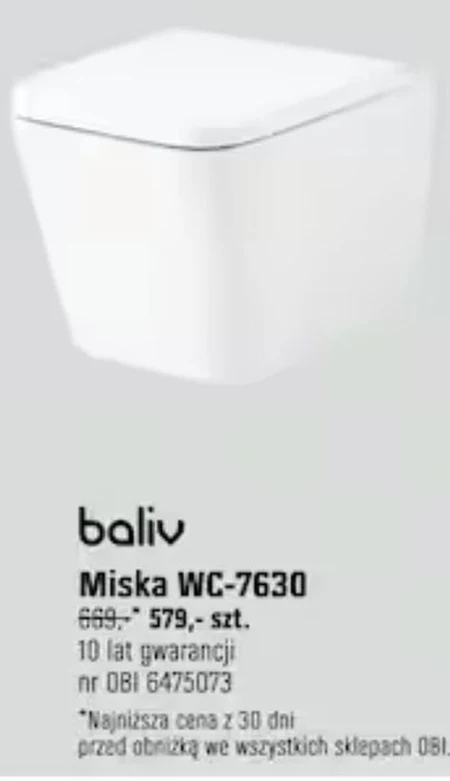 baliv Miska WC-7630. Najniższa cena z 30 dni przed obnizką we wszystkich sklepach OBI.
