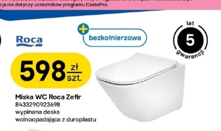 Miska WC Roca Zefir jest dostępna w ofercie Castorama w cenie 598 zł za sztukę. Posiada wypinaną deskę, co ułatwia utrzymanie higieny i czyszczenie, a także wspopadający spłukiwacz wykonany z duroplastu. Produkt przeznaczony jest do standardowych łazienek i zapewnia komfort użytkowania. To propozycja dla osób szukających funkcjonalnego rozwiązania w dobrej cenie, idealna do remontu lub budowy łazienki. Warto rozważyć zakup, jeśli szukasz trwałej i wygodnej miski WC. Oferta ważna od 2026-04-07 do 2026-04-21 Źródło: gazetka Castorama