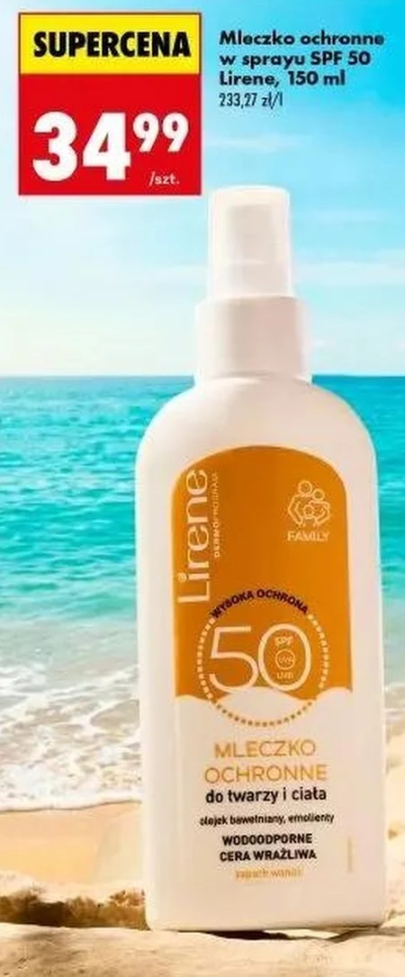 Mleczko ochronne w sprayu SPF 50 Lirene, 150 ml