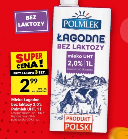 Mleko Łagodne bez laktozy 2,0% Polmlek UHT, 1 l