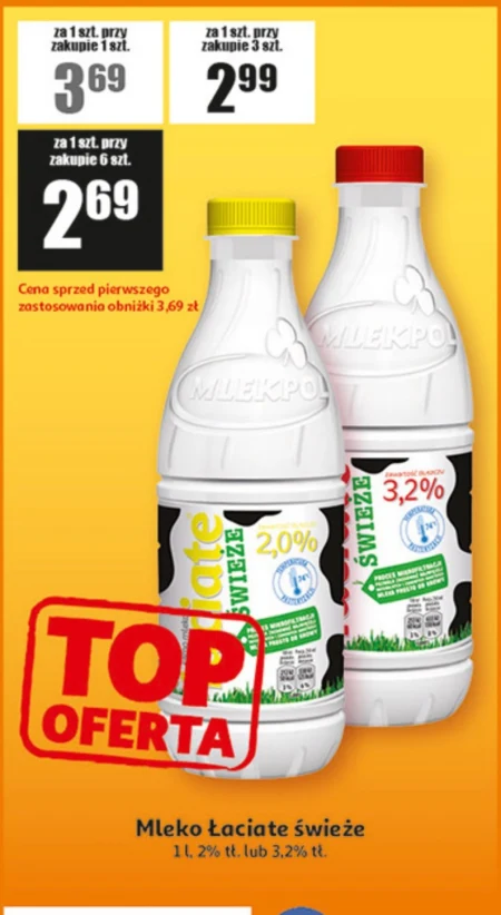 Mleko Łaciate świeże 1 l, 2% tł. lub 3,2% tł.