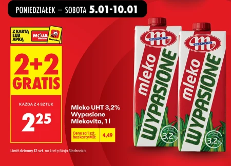 Mleko UHT 3,2% Wypasione Mlekovita, 1l