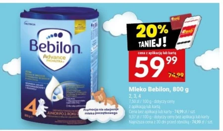 Mleko Bebilon, 800 g 2, 3, 4 7.50 zł / 100 g - dotyczy ceny z aplikacją lub kartą Dena bez aplikaci lub karty - 74,99 zł / szt. 9,37 zł / 100 g - dotyczy ceny bez aplikacji lub karty Najniższa cena z 30 dni przed obniżką - 74,99 zł / szt.