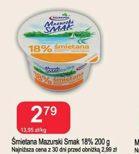 Mlekpol Mazurski Smak Śmietana 18 % 200 g - Oferta archiwalna