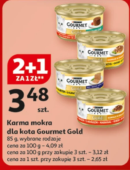 Karma mokra dla kota Gourmet Gold 85 g, wybrane rodzaje cena za 100 g - 4,09 zł cena za 100 g przy zakupie 3 szt. - 3,12 zł cena za 1 szt. przy zakupie 3 szt. - 2,65 zł
