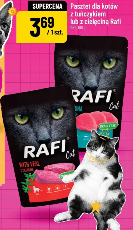 Pasztet dla kotów z tuńczykiem lub z cielęciną Rafi DNP, 100 g