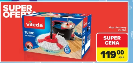 Map obrotowy VILEDA SUPER CENA 119,00 opak. Map obrotowy Vileda w Carrefourze dostępny jest w wyjątkowej cenie 119,00 zł za opakowanie. Ten praktyczny i wydajny mop pozwoli Ci szybko i skutecznie posprzątać podłogi w całym domu, oszczędzając czas i energię. Dzięki obrotowemu systemowi wirowania, mop jest zawsze odpowiednio odciśnięty, co minimalizuje ilość wody na podłodze i przyspiesza schnięcie. Sprawdź gazetkę promocyjną Carrefour i skorzystaj z okazji!