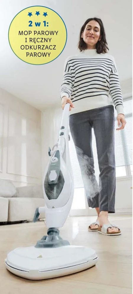 Mop parowy 2 w 1 • pojemnik na wodę o poj. 350 ml • dł. przewodu sieciowego: 6 m bogaty zestaw akcesoriów