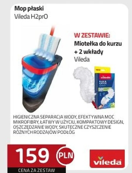 Mop płaski Vileda H2pro HIGIENICZNA SEPARACJA WODY, EFEKTYWNA MOC MIKROFIBRY, ŁATWY W UŻYCIU, KOMPAKTOWY DESIGN, OSZCZĘDZANIE WODY, SKUTECZNE CZYSZCZENIE RÓŻNYCH RODZAJÓW PODŁÓG