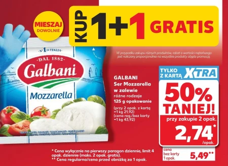 GALBANI Ser Mozzarella w zalewie różne rodzaje 125 g opakowanie (przy 2 opak. z kartą =1 kg 21,92) (cena reg./bez karty =1 kg 43,92)