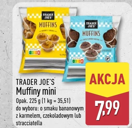 TRADER JOE'S Muffiny mini Opak. 225 g (1 kg = 35,51) do wyboru: o smaku bananowym z karmelem, czekoladowym lub stracciatella