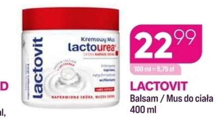 LACTOVIT Balsam / Mus do ciała 400 ml Lactovit Balsam/Mus do ciała to intensywna pielęgnacja dla suchej skóry, która zapewni jej gładkość i nawilżenie na długo. Formuła z naturalnymi składnikami odżywi skórę, pozostawiając ją miękką i delikatną w dotyku. Dostępny w Drogerie Koliber, to świetny sposób na codzienne zadbanie o ciało w atrakcyjnej cenie. Spraw sobie chwilę luksusu z Lactovit!