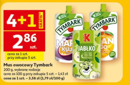 Mus owocowy Tymbark 200 g, wybrane rodzaje cena za 100 g przy zakupie 5 szt. - 1,43 zł cena za 1 szt. - 3,58 zł (1,79 zł/100 g)