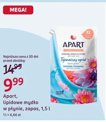 Apart, lipidowe mydło w płynie, zapas, 1,5 l 1 l = 6,66 zł