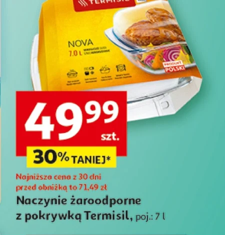 Naczynie żaroodporne Termisil z pokrywką dostępne jest w Auchan w cenie 4,99 zł, co oznacza obniżkę o trzydzieści procent w stosunku do ceny sprzed trzydziestu dni, wynoszącej 71,49 zł. Naczynie ma pojemność siedmiu litrów i idealnie sprawdzi się do zapiekania potraw dla rodziny lub większej grupy osób. Wykonane jest z wysokiej jakości szkła żaroodpornego, dzięki czemu jest odporne na wysokie temperatury i łatwe w czyszczeniu. To świetna okazja, aby zaopatrzyć się w praktyczne naczynie do kuchni w wyjątkowo niskiej cenie.