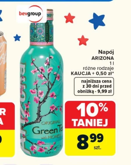 Napój ARIZONA 1 l różne rodzaje KAUCJA + 0,50 zł* najniższa cena z 30 dni przed obniżką - 9,99 zł