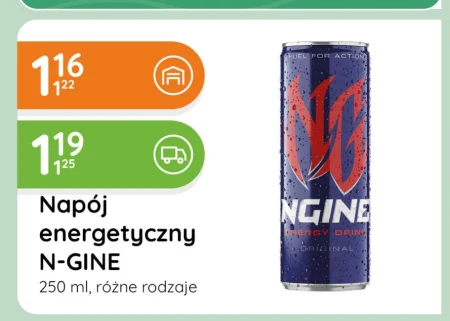 Napój energetyczny N-GINE 250 ml występuje w ofercie Eurocash Cash&Carry. To orzeźwiający napój, który dzięki zawartości składników energetyzujących pomaga w chwilach zmęczenia i zwiększa koncentrację. Doskonale sprawdzi się podczas intensywnej pracy, nauki lub aktywności fizycznej, zapewniając zastrzyk energii i witalności. Różne rodzaje smaków pozwalają na wybór ulubionego wariantu i zaspokojenie indywidualnych preferencji. Warto skorzystać z dostępnej oferty i zaopatrzyć się w ten napój, aby mieć pod ręką dawkę energii, kiedy jej potrzebujesz. Oferta ważna od 2026-04-02 do 2026-04-15 Źródło: gazetka Eurocash Cash&Carry
