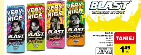 Napój energetyzujący BLAST jest dostępny w ofercie Carrefour Market w cenie 1,49 zł za sztukę, przy pojemności 250 ml. Cena litra to 5,96 zł. Obecna cena jest najniższa z ostatnich 30 dni i jest niższa o 0,06 zł w porównaniu do poprzedniej promocji, kiedy to kosztował 1,55 zł. Ten energetyzujący napój to szybki zastrzyk energii, idealny podczas nauki, pracy czy intensywnego treningu, dostępny w różnych smakach. Warto wykorzystać tę okazję i zaopatrzyć się w ulubiony napój w atrakcyjnej cenie. Źródło: gazetka Carrefour Market