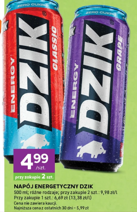 NAPÓJ ENERGETYCZNY DZIK 500 ml; różne rodzaje; przy zakupie 2 szt.