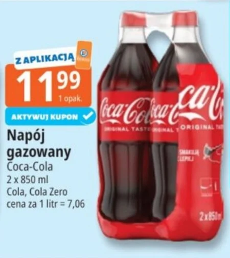 Napój gazowany Coca-Cola 2 x 850 ml Cola, Cola Zero cena za 1 litr = 7,06