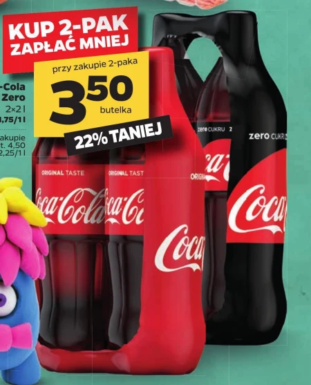 Coca - Cola Zero, 2 x 2 l, 175/ 1l. Podana cena za butelkę przy zakupie 2 paczek.