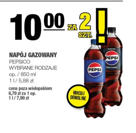 NAPÓJ GAZOWANY PEPSICO WYBRANE RODZAJE op. / 850 ml 1 1 / 5,88 zł cena poza wielopakiem 6,79 zł za 1 op. 11/7,99 zł