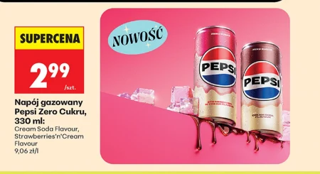 Napój gazowany Pepsi Zero Cukru, 330 ml: Cream Soda Flavour, Strawberries’n’Cream Flavour 9,06 zł/l
