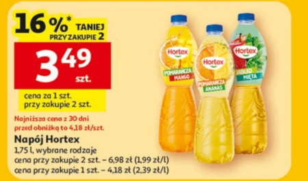 Napój Hortex 1,75 l, wybrane rodzaje cena przy zakupie 2 szt. - 6,98 zł (1,99 zł/l) cena przy zakupie 1 szt. - 4,18 zł (2,39 zł/l)