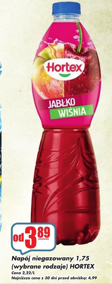Napój niegazowany 1,75 (wybrane rodzaje) HORTEX Cena 2,22/L Najniższa cena z 30 dni przed obniżką: 4,99