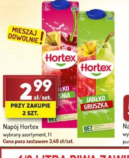 Napój Hortex wybrany asortyment, 1l Cena poza zestawem 3,49 zł/szt.